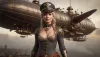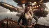 Steampunk, A wide shot from outside of an airship into an extremely detailed control center on an antique airship, 40 years old, best quality, ultra detailed, masterpiece, fine details, high resolution, a solo blonde female captain on the deck of an airship, ((slim and flat-chested:1.6)), wears unique detailed Captain uniform, dashboard, gauges, steam engine and gears in the background, 8k wallpaper, sexy, a smile, dimples on his cheeks, smile, dimples. Smile, dimples, blue eyes, colorful patterned cape, gloves, gold patterned necklace, cylindrical hat, goggles, bracelets, tattoo, (vintage airships battle in the background:1.5), airship explodes, steampunk style grime, top view of earth landscape, sunset, gold-rimmed clouds, translucent in the sun. flat, chested, anchespaceroom, cloudy, smoke, atmospheric, clouds, fog, steampunknoireai, mad-mecharm, <lora:flat_chested_v3.5:.3>, <lora:Cloudy_Style:1>, <lora:SteamPunkNoireAIp:.7>, <lora:Gearbound_Mechanical_Arm_SDXL:.8>, <lora:Hell_Constantine_2005_-_Anime:1.6>