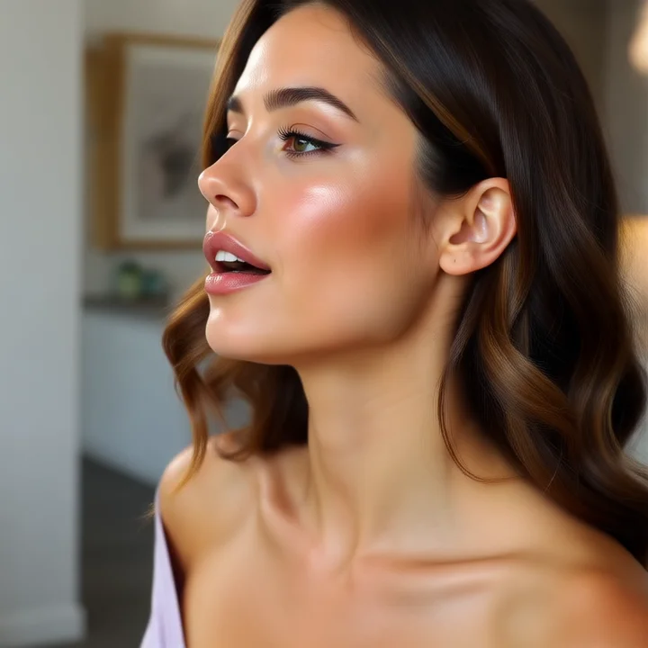 En la comodidad de su casa-estudio, una joven se sienta en una silla, su pierna ligeramente separada, revelando un pubis no afeitado. Lleva una parte superior rosa y bragas transparentes, sosteniendo una taza de café, perdida en el pensamiento entre los libros de texto dispersos. La iluminación suave y natural saca las delicadas características de su rostro, exudiendo un encanto inteligente pero atractivo, una mezcla de profesionalismo e intriga.