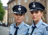 two women, german policewomen, 35-years old, full body view, front view two women, german policewomen, 35-years old, full body view, front view